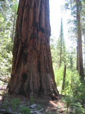 The massive base of a giant Sequoia. The Grizzly Giant in Yosemite might be 2,700 years old (although some people have placed it at 1,600 years. Let's say 2,000 years old.) These beasts grow to be 30 feet across, 300 feet high, 3,000 years old: the largest living thing by volume. They have shallow roots and are given to tipping over. Well, not that much, since they're standing after 2,700 years, but ...