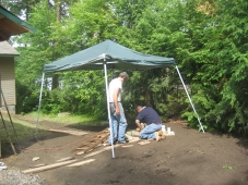 raining quite a bit, so Darrin put up a tent.